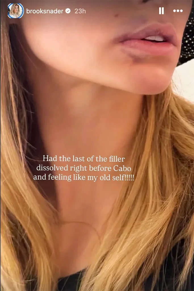 The shift did not come completely out of the blue. Her sister, Sarah Jane Nader, first hinted at the change in a December 23 TikTok, though she did not go into detail at the time. Weeks later, Sarah Jane shared a smiling photo of Brooks on her Instagram Stories and called her “filler-free.” Brooks reposted the image to her own Stories, adding that she had the last of her filler dissolved just before heading out on a trip to Cabo.